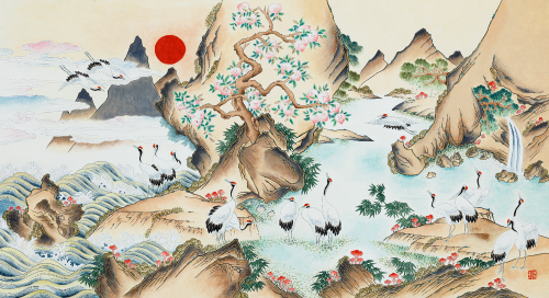 신선들이 학을 타고 하늘을 날거나, 바다를 건너는 장면이 민화에서 종종 등장합니다.