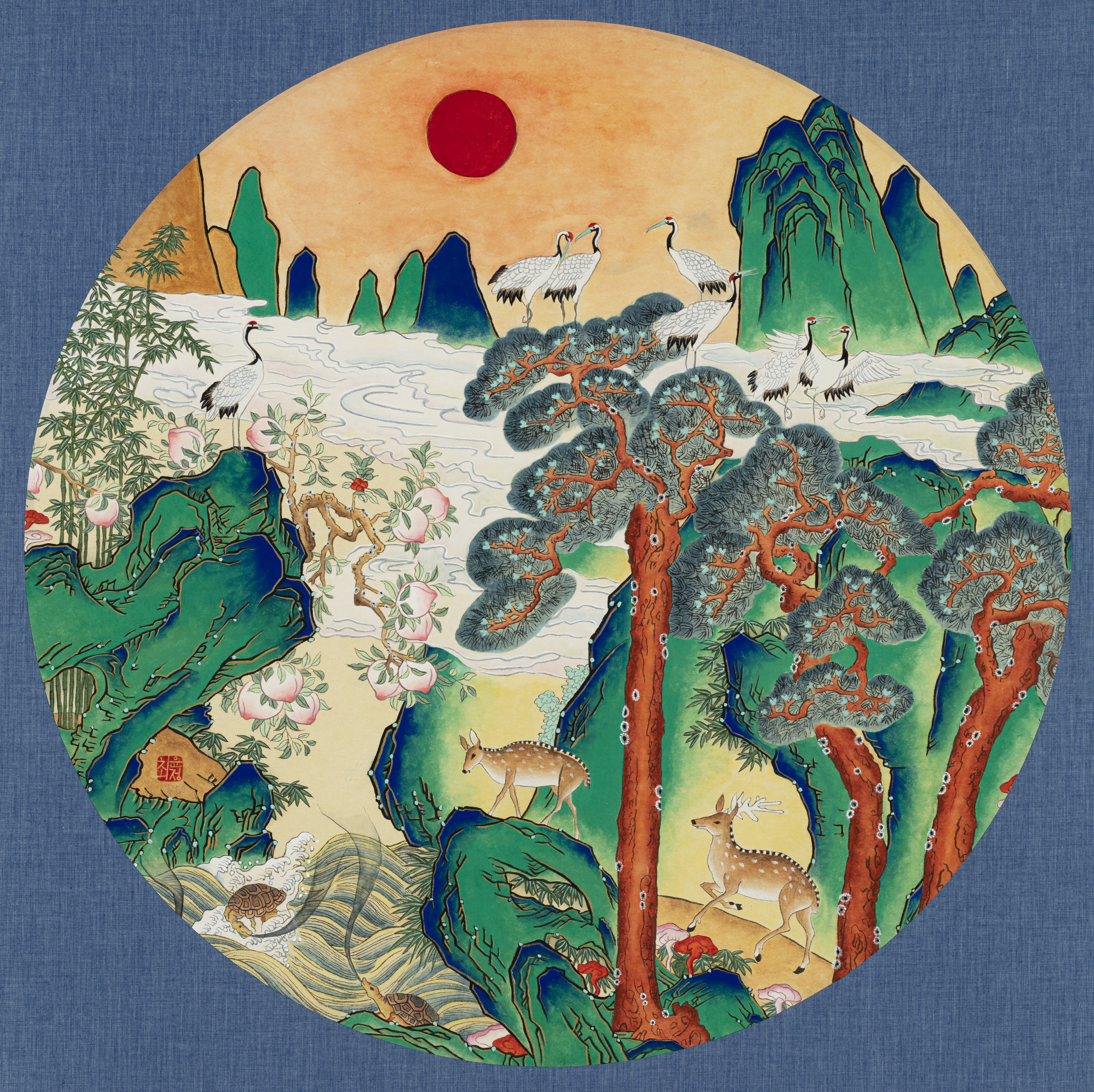 - 십장생도 : 소나무, 학, 거북이, 복숭아, 사슴, 영지버섯 등 "열 가지 장수의 상징"을 그린 대표적인 민화 그림입니다.